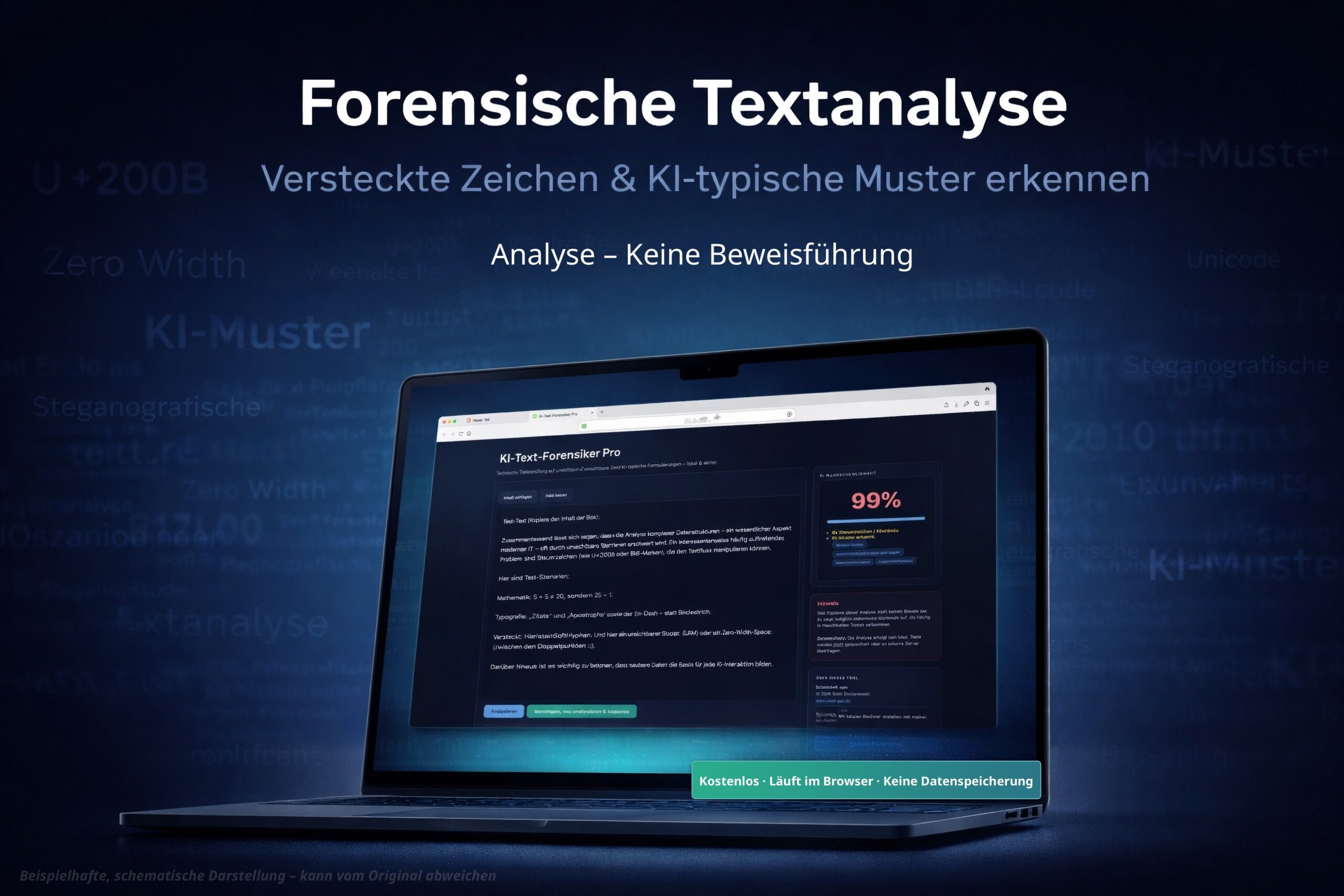 Meine Webapp analysiert Texte auf versteckte typografische Zeichen und KI-typische Muster – nicht als Beweis, sondern als Einordnung.