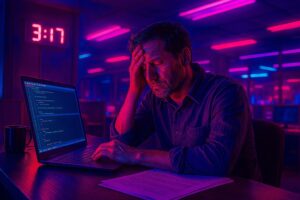Die Neonröhren des Büroblocks flackerten unheilvoll, ein stummer Rhythmus, der mit Sven’s Herzschlag synchron war. Es war 3:17 Uhr morgens, und der Bildschirm seines Laptops leuchtete in seiner dunklen Ecke wie ein kleines, unaufhaltsames Fieber. Sven, ein Senior Developer bei „BugByte Studios„, war seit über 48 Stunden wach. Es hatte mit einem kleinen Fehler in der neuesten Version der Kunden-App begonnen – ein kniffliger, scheinbar unlösbarer Fehler, der sich wie ein Virus durch den Code fraß. Er hatte es gestern Abend versucht, ihn zu fixen. Dann hatte er eine weitere Änderung vorgenommen, um ein Problem mit der Datenbank zu beheben, und plötzlich war der ursprüngliche Fehler wieder da, schlimmer noch,